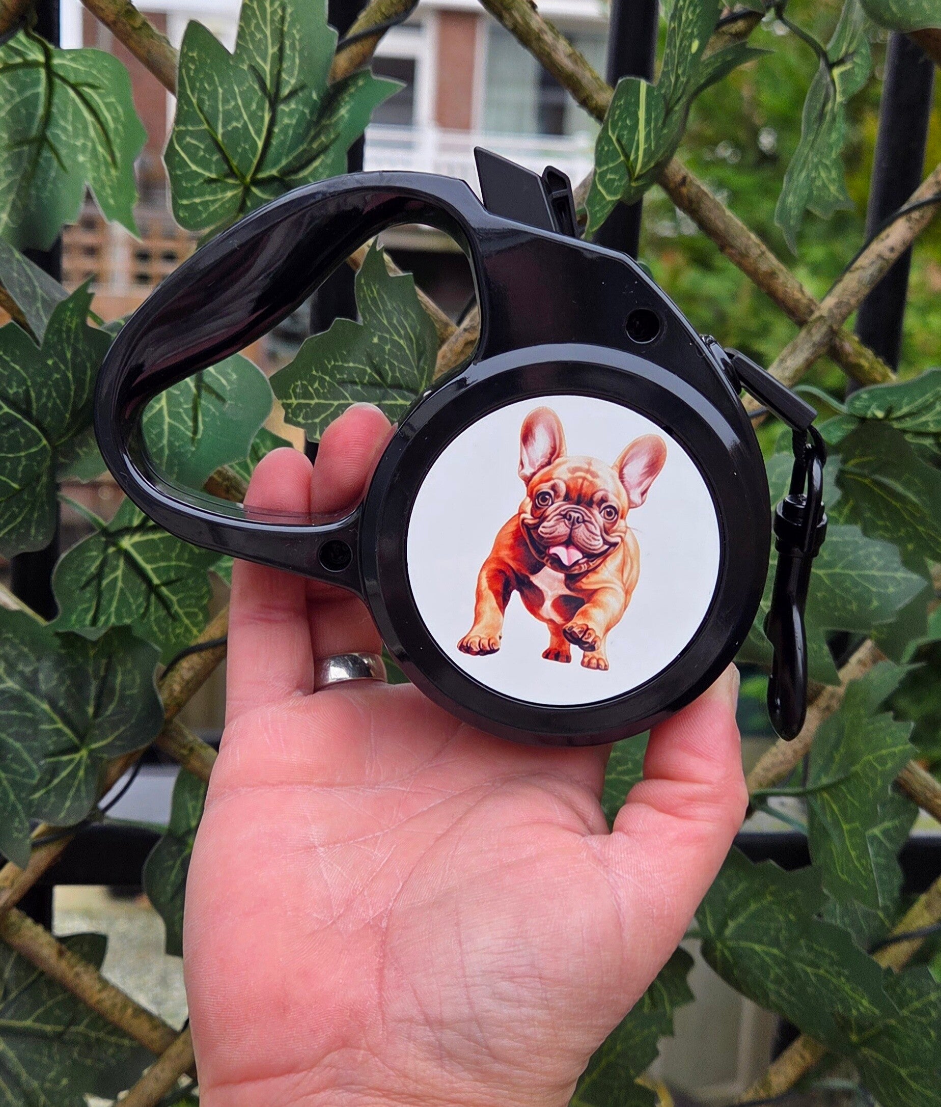 Met een leuke Franse buldog hij is 3 meter lang inc kliksysteem en een gemiddelde brede draad.